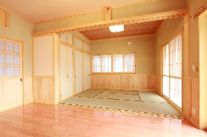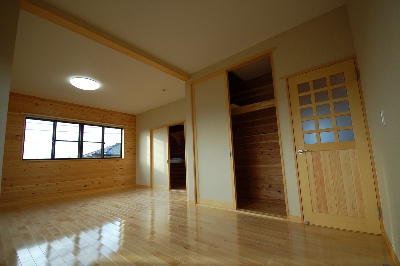 子育て世代、全て無垢材(桧とヒバ)を使い、塗装も天然塗料を塗り、