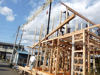 在来軸組工法(手刻み)の為12尺の柱を使用