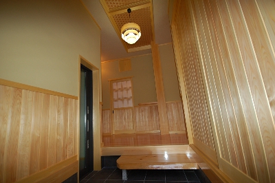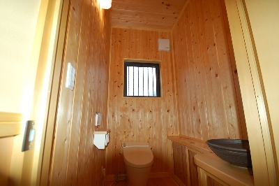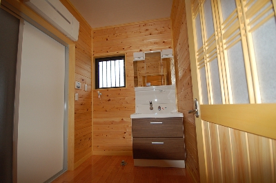 トイレ脱衣場共に板張り仕上げ、あきの来ない仕上がりに