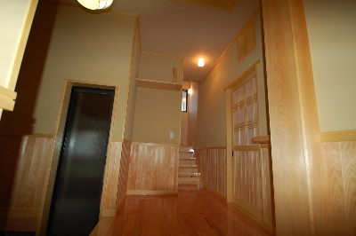 鹿沼建具と、淡い照明で、しっとりとした玄関ホール