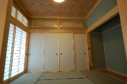 お客様をもてなす客間は、差し鴨居を差し、鶴を飛ばしました。