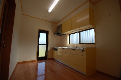 台所は広々6畳、余裕を持った調理スペース、台所、トイレ、洗面、お風呂が一直線に配置、